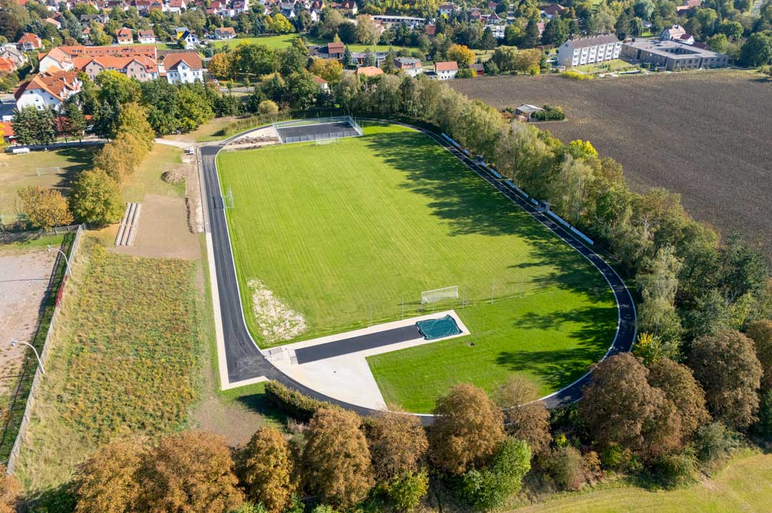 Auf dem Sportplatz in Rastenberg tut sich etwas: Die ersten sichtbaren Schritte der geplanten Sanierung sind gemacht. Auf der aktuellen Luftaufnahme erkennt man bereits deutlich die neue Struktur – von der künftigen Laufbahn bis zu den weiteren Sportanlagen.