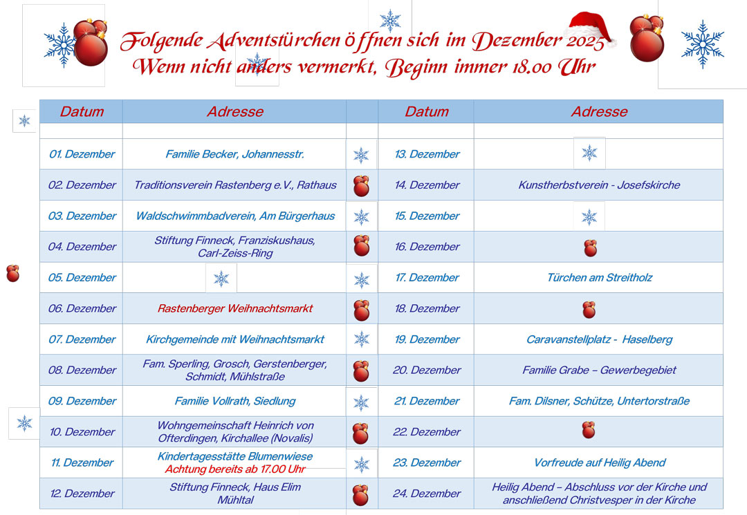 Alle Termine zum Rastenberger Adventskalender